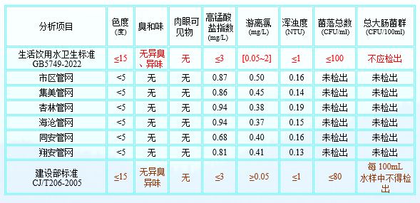 2025年1月厦门市政水务给水水质公告