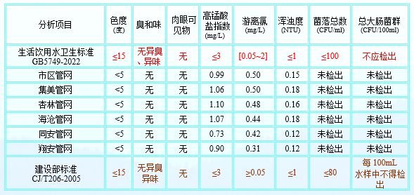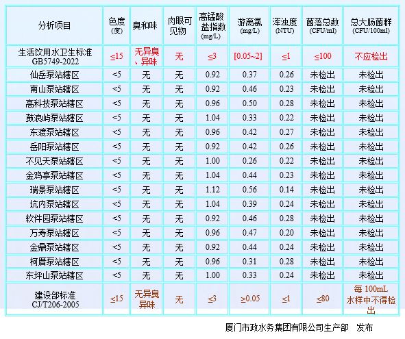 2025年7月厦门市政水务给水水质公告