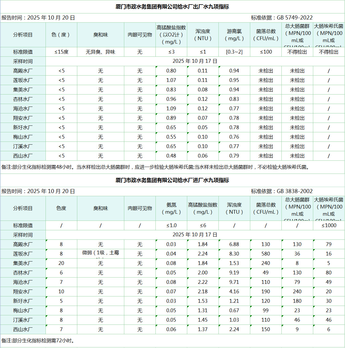 2025年10月17日海角视频 给水水厂水质信息公布