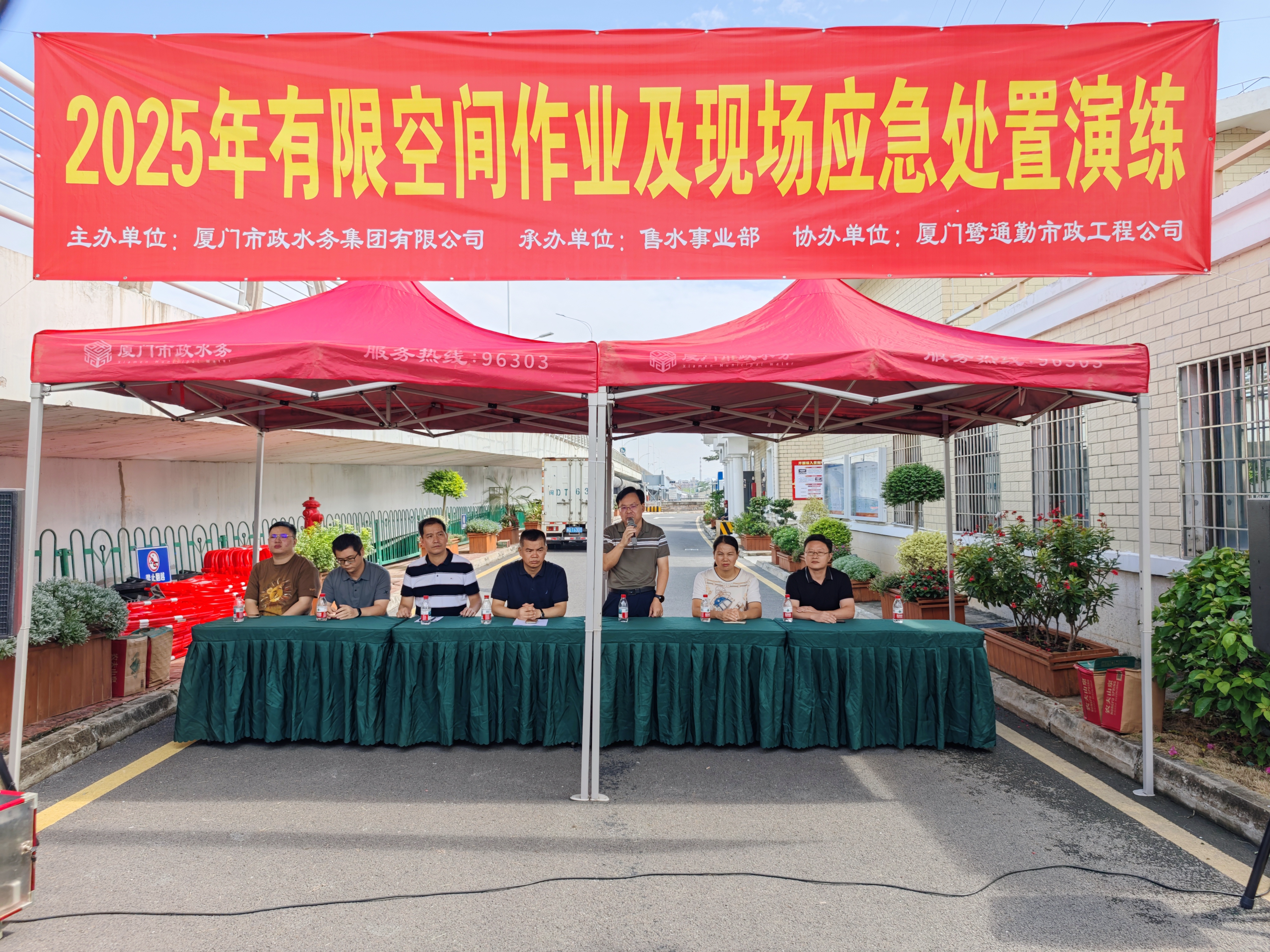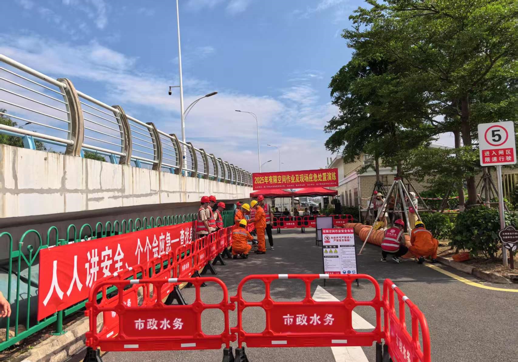 6月18日上午,为贯彻落实市政水务集团2025年“安全生产月”工作要求,一场由集团售水事业部举办的实战化有限空间作业及现场应急处置演练在海沧营业所辖区新阳加氯间拉开序幕。市水务中心供水科科长叶桂榕,市政水务集团党委委员、副总经理林文亮,安保部经理张荣海,售水事业部总经理吴元喜等相关负责人现场观摩指导。